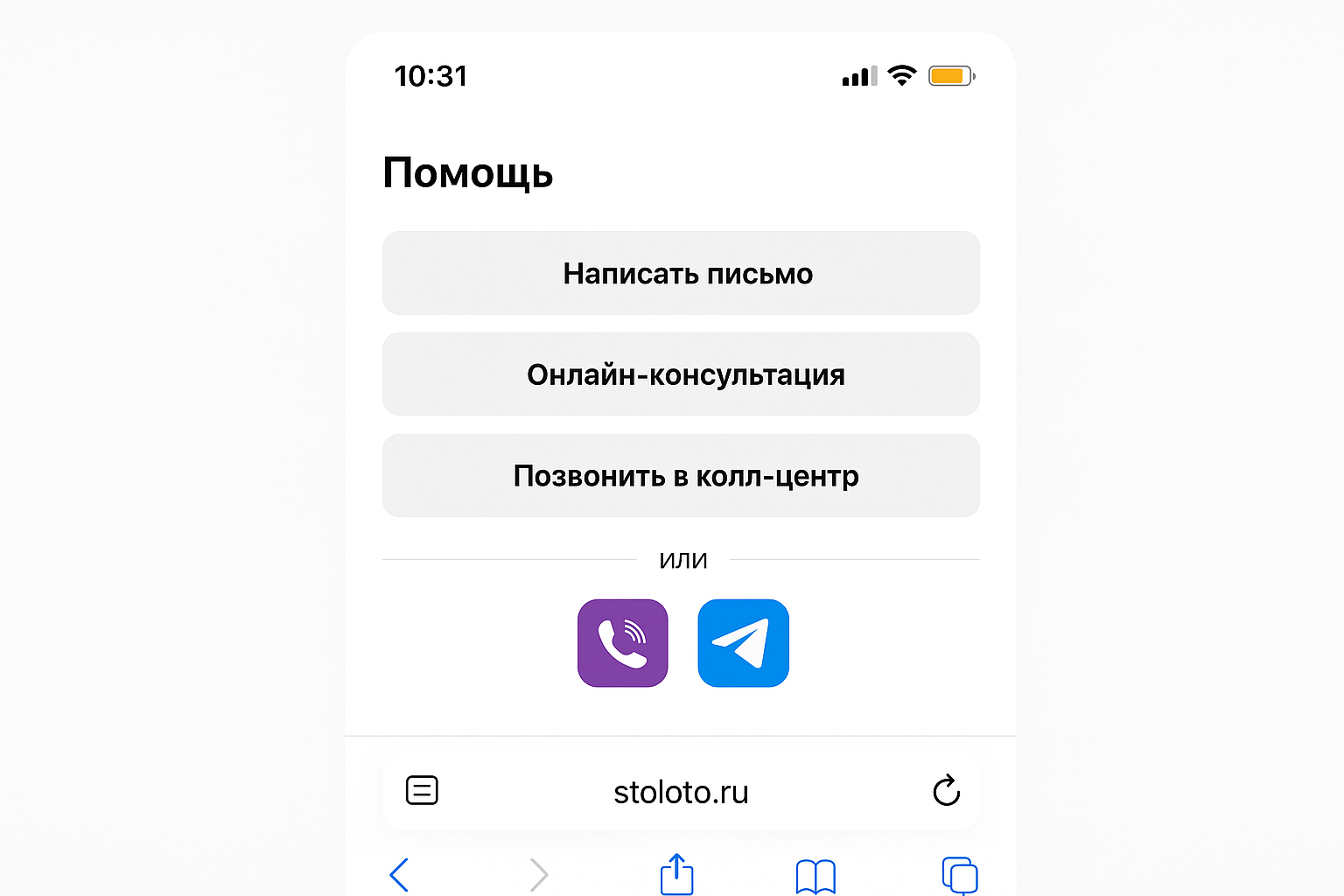 • Горячая линия по телефону — Столото (звонок из РФ)