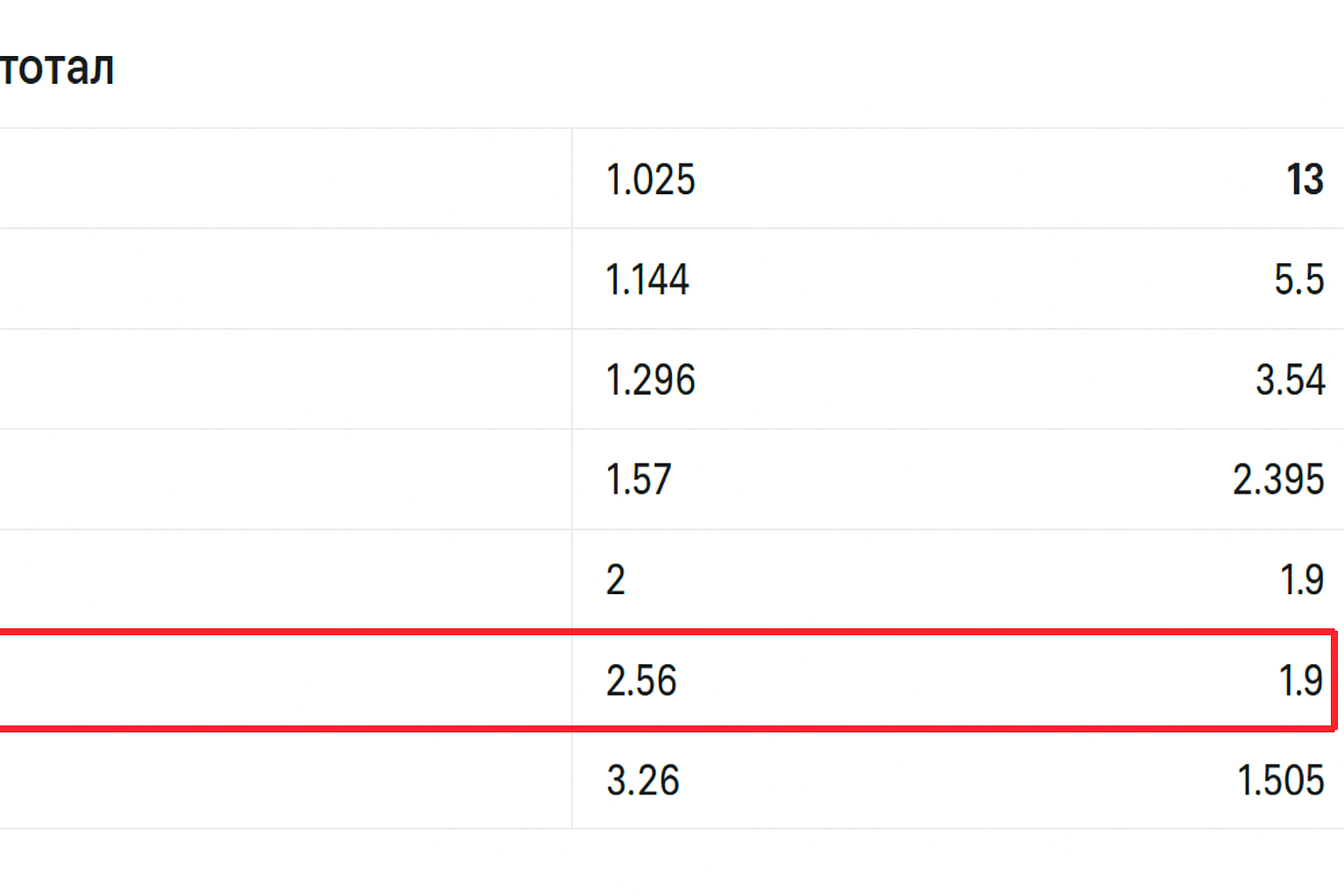 Есть нюанс формата 3.25: при ровно трех событиях в игре часть с ТБ 3.0 закроется с коэффициентом 1.00 (возврат), тогда как доля с ТБ 3.5 будет проиграна.