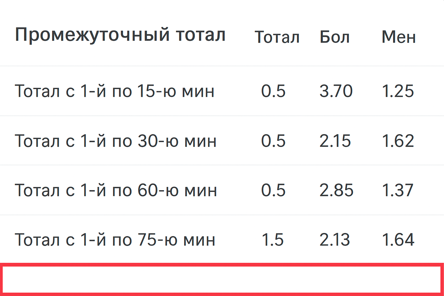Иногда БК формулируют рынки иначе, хотя по сути это те же ставки на тотал. Например, «Игрок забьет», «Назначат пенальти», «Появится медбригада на поле» — все это эквиваленты «тотал больше 0.5» по соответствующему событию. Варианты с порогом 1.5 и выше встречаются реже, но тоже доступны.