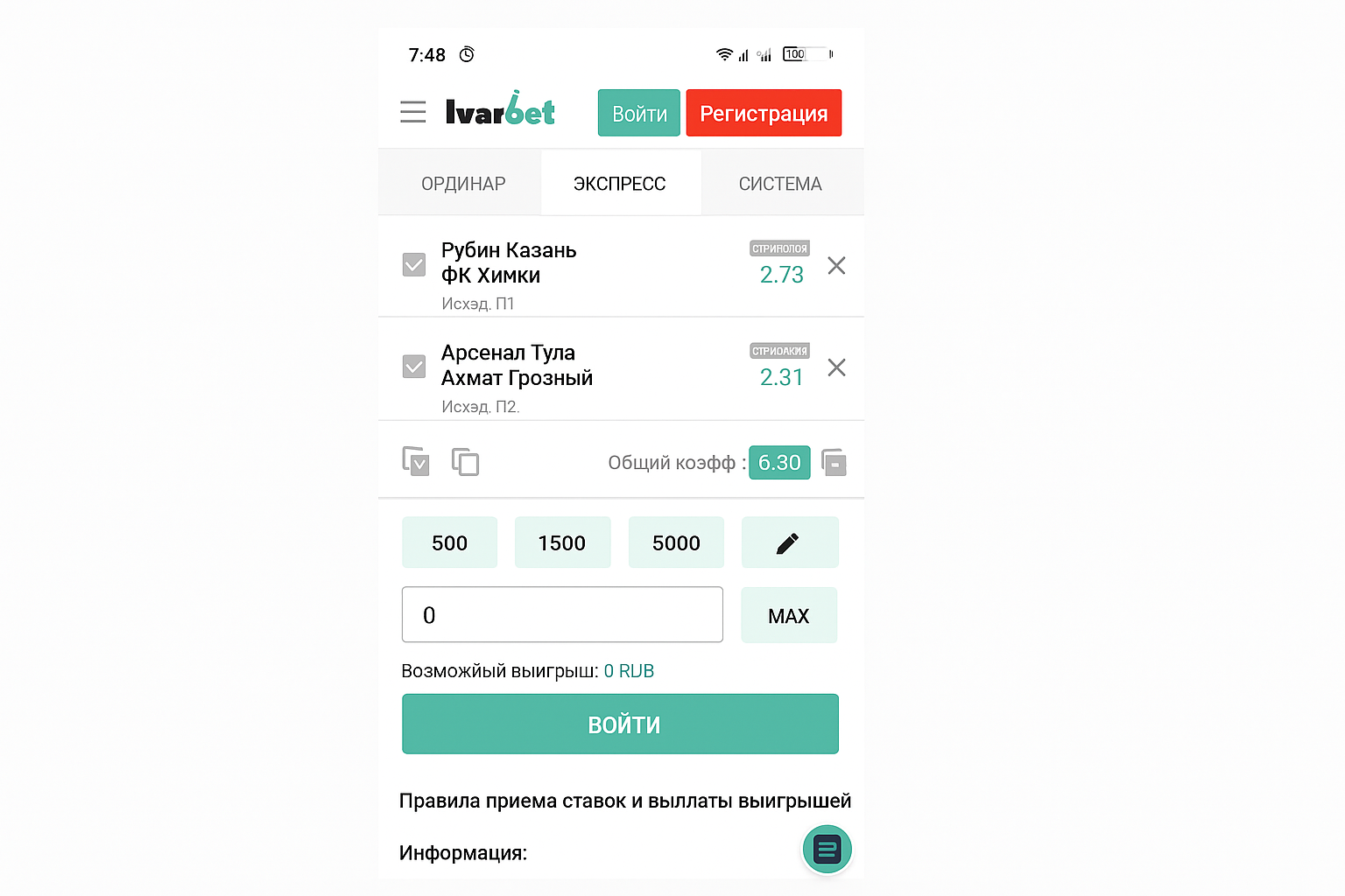 Экспресс в приложении Ivanbet: пари и купон на Android