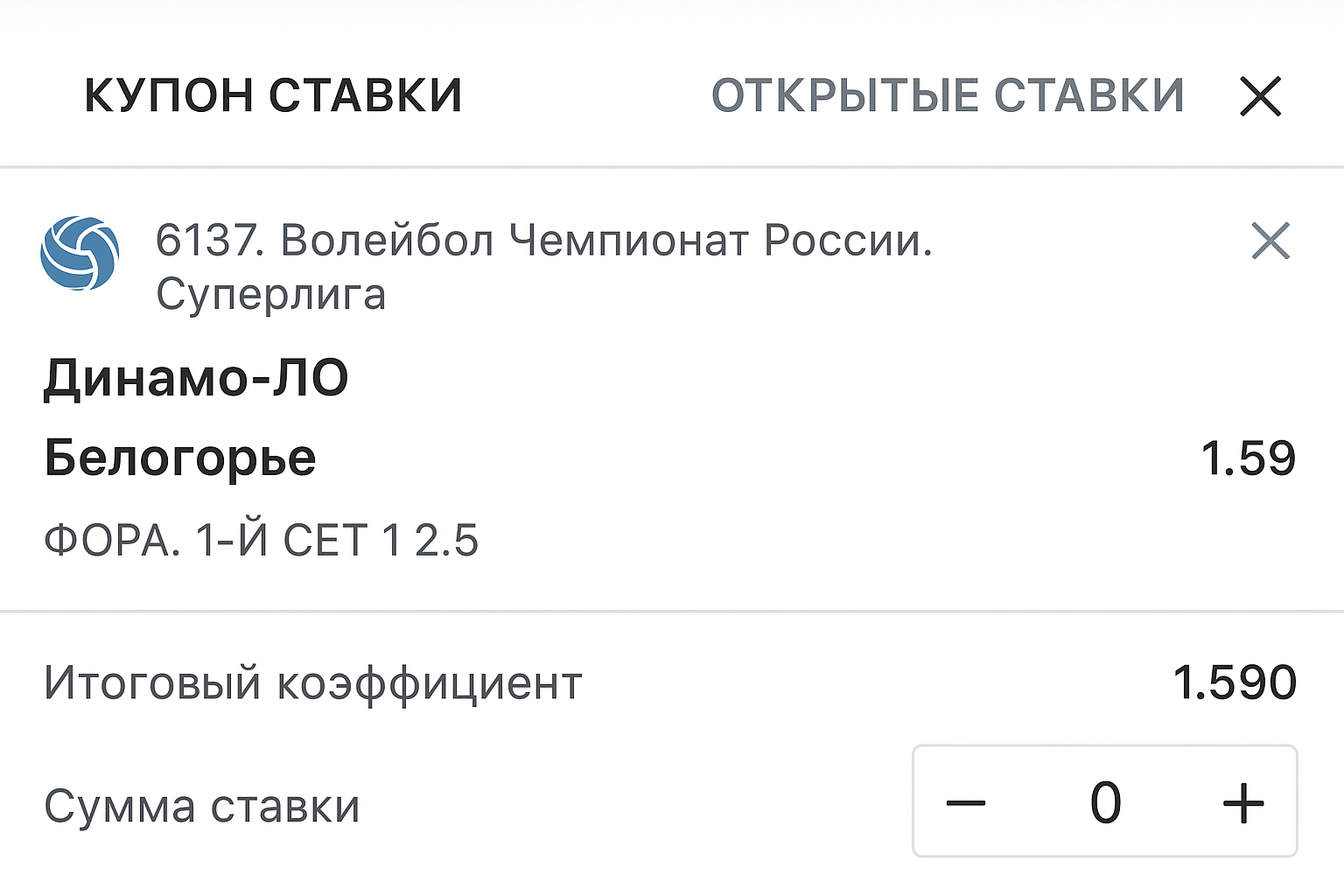 Допустим, берется фора по очкам в первой партии. При минимальном поражении «Динамо» ЛО в два пункта или при победе хозяев пари с плюсовой форой Ф1 пройдет; в ином случае будет проигрыш. В большинстве турниров партии играются до 25 очков, что важно учитывать при выборе значения.