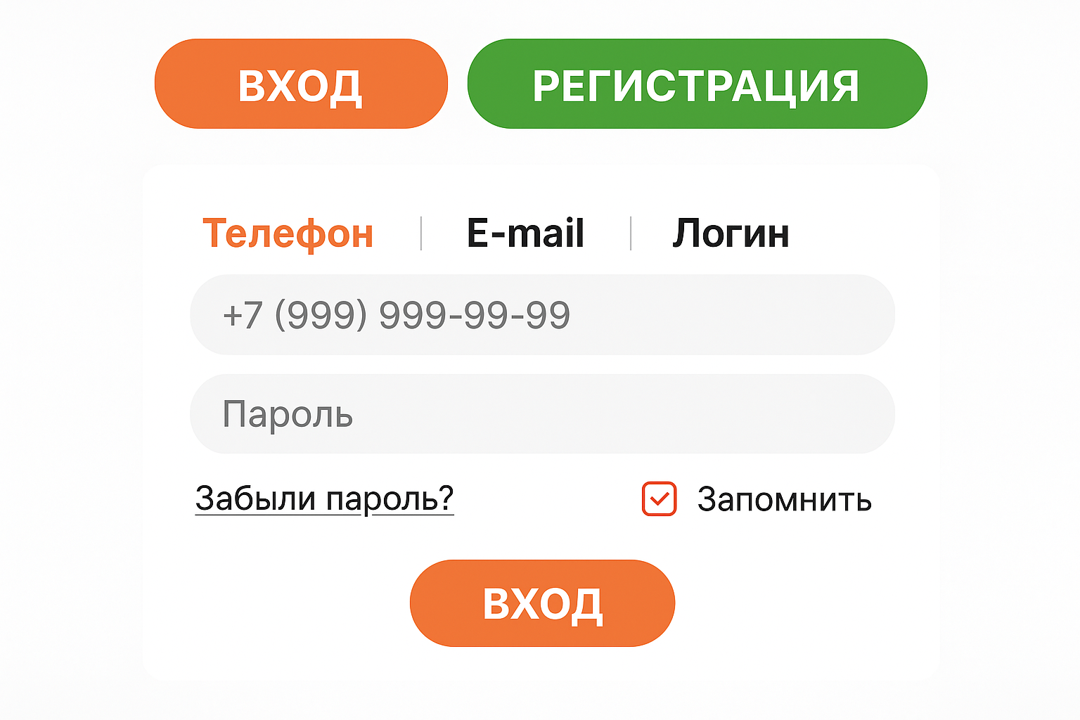 Когда реквизиты введены корректно, нажмите «Войти» — система авторизует вас, и все инструменты площадки станут доступны без ограничений.