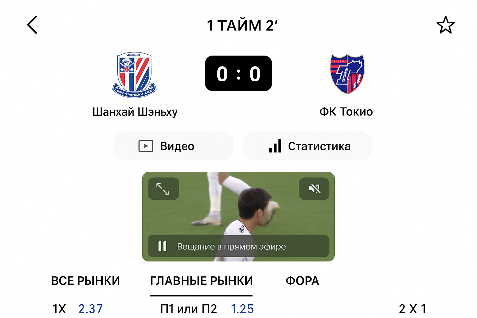 • Выберите матч с пиктограммой воспроизведения рядом с рынками.
