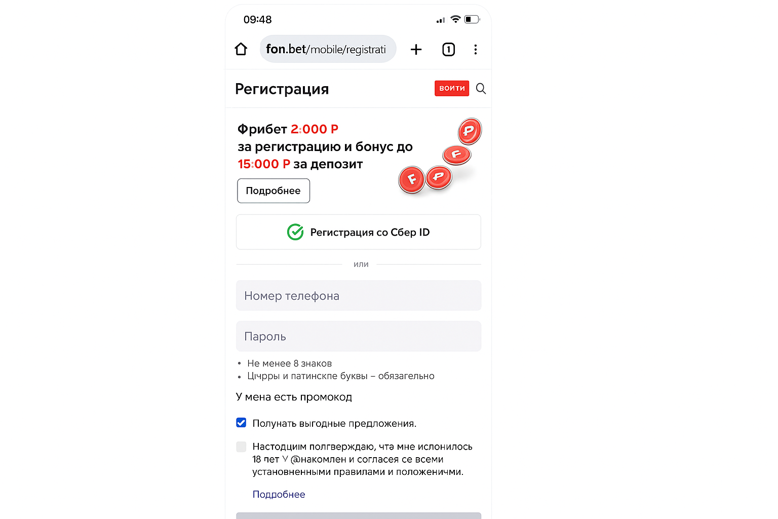 С любого мобильного устройства на iOS или Android можно быстро открыть мобильную версию и пройти процесс регистрации в Fonbet.