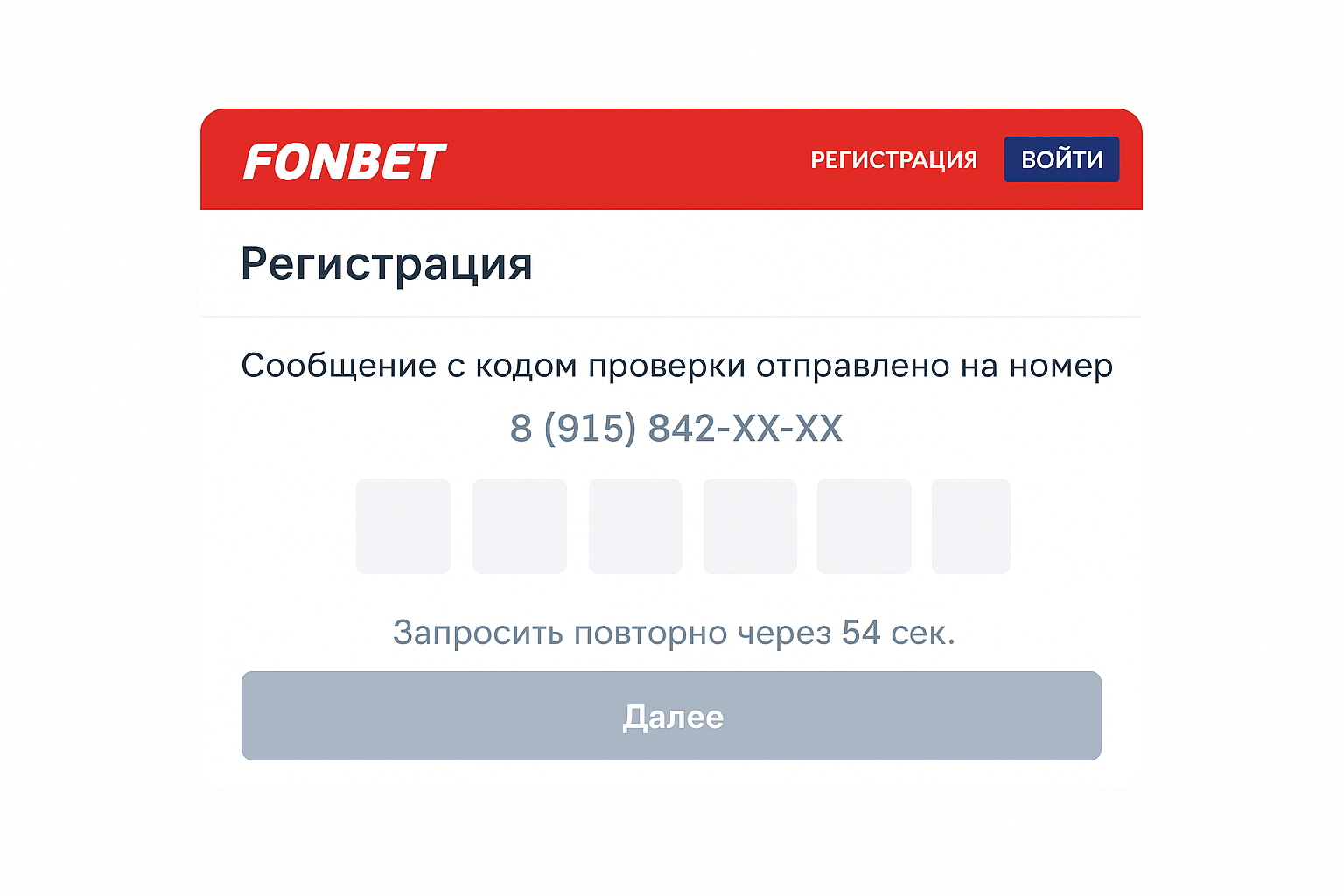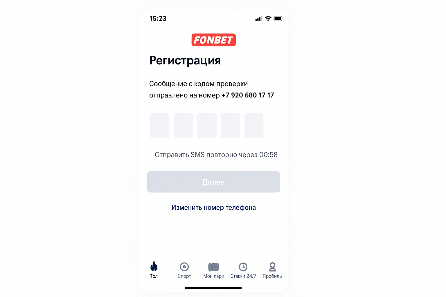 - Номер телефона, который привязан к Fonbet, — на него система отправляет коды подтверждения операций.