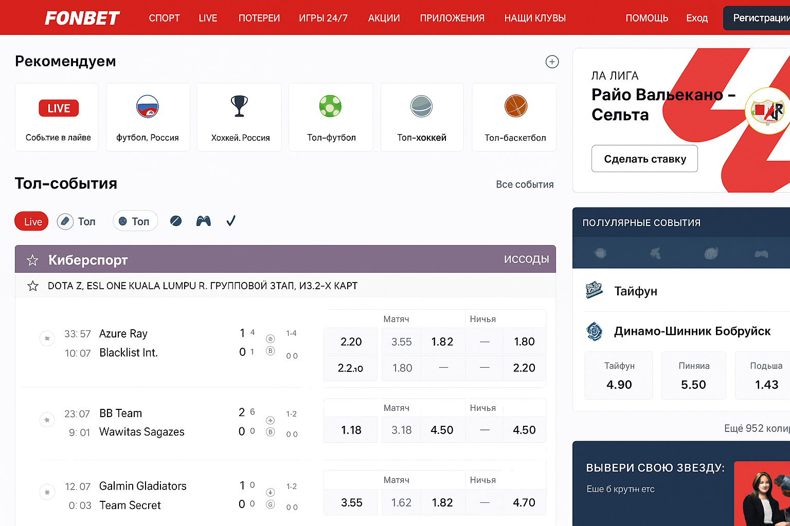 Fonbet — легальный букмекер с многолетней историей на рынке РФ; бренд стабильно входит в высокие позиции народных рейтингов.