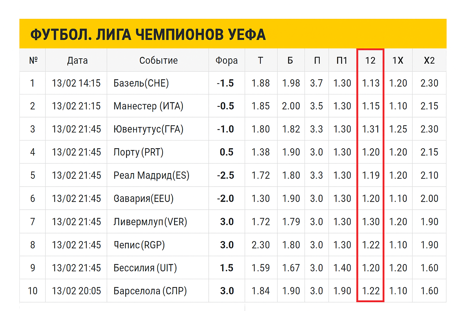 Наконец, сам по себе исход 12 в большинстве пар имеет низкие коэффициенты: нередко видим 1.35 даже у равных соперников. Отбор матчей «по цифрам» вместо анализа фактов не даёт устойчивого заработка, пусть и ускоряет составление шортлиста.