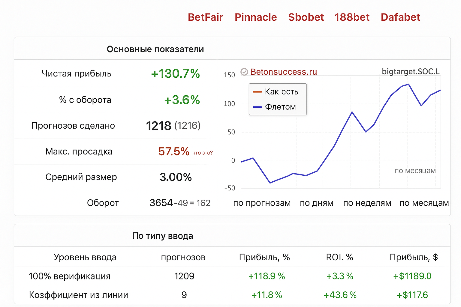 Overbetting ru. Русскоязычный сервис‑верификатор с обширной базой материалов. Помимо бесплатных и платных прогнозов проводятся конкурсы с призами, что помогает выявлять самых результативных авторов. Рейтинги учитывают ROI и доходность относительно банка, что делает сравнение прозрачным.