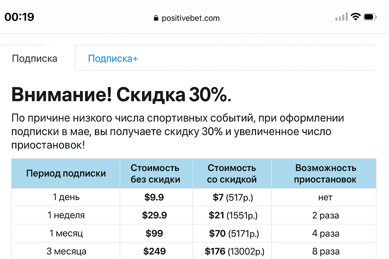 Функции покажем на первом сервисе. Вилки с доходностью до 1% доступны бесплатно, а подробности по платным планам и уровням подписки можно увидеть на скриншоте ниже.